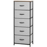 HOMCOM 5 Drawer Dresser for Bedroom, Tall Fabric Chest of Drawers with Steel Frame, Wood Grain Top and Handles, Grey