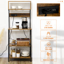 HOMCOM Baker's Rack with Charing Station, Microwave Shelf with Power Outlet, USB Charger and 5 Hooks, Rustic Brown