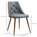 HOMCOM Dining Chairs Set of 2, Tufted Kitchen Chairs, PU Leather Upholstered Seats and Steel Legs for Dining Room, Grey