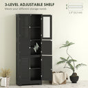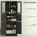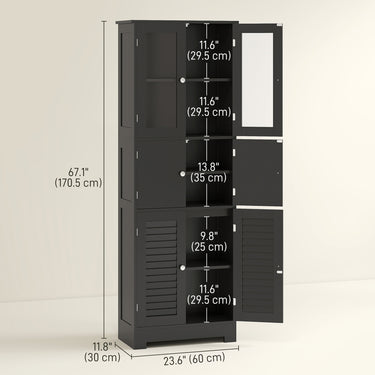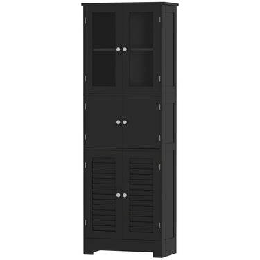 HOMCOM Freestanding Bathroom Cabinet with Glass/Louvred Doors, Tall Bathroom Cabinet for Kitchen, Study, Living Room, Black