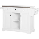 Intend to keep your kitchenware neatly organized? This kitchen cart with wheels is a must-have. Made from solid MDF and particleboard, this microwave stand boasts classic colour and a spacious stainless steel countertop. 3 drawers, 2 cabinets, and 2 open shelves for all your accessories, utensils, plates, and baking dishes. Spice rack with knife holders, towel bars complete the compact design. An anesthetic modern look can coordinate anywhere.