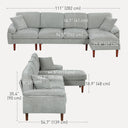 HOMCOM L-Shape Sofa, Modern Sectional Couch with Changeable Chaise Lounge, Pillows and Wooden Legs for Living Room, Grey