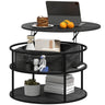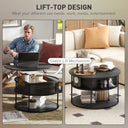 HOMCOM Lift Top Coffee Table, Round Coffee Table with Storage Shelf, Hidden Compartment and Steel Frame, Distressed Dark Grey