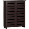 HOMCOM Narrow Shoe Cabinet with 2 Slatted Doors, Modern Shoe Storage Cabinet with Adjustable Shelves for Entryway, Hallway, Living Room, Holds 15 Pairs, Dark Brown