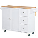 HOMCOM Rolling Kitchen Island with Drop Leaf, Kitchen Cart with Cabinet, 3 Drawers, Wood Top, White