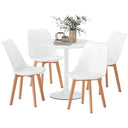 Discover the sleek charm of the HOMCOM Dining Table Set, a must-have for modern homes. This space saving table and chairs set features a chic round dining table that offers lots of legroom and four beautifully crafted kitchen chairs with ergonomic backrests for superior comfort. This kitchen table and dining chairs set not only beautifies dining areas but also enhances cafes and small living spaces with style.