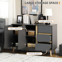 Make a statement, with just a touch of moodiness for the season ahead: look to this HOMCOM sideboard. This coffee bar cabinet comes in a dark matte grey colour, with wood-effect details bringing a touch of the natural. Comes with two cabinets and three drawers - there's lots of room for keeping your space discreetly tidy. Cabinets come with adjustable shelves: great for when you want to store differently-sized items. Complete with anti-tipping straps for safety.