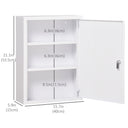 kleankin Lockable Medicine Cabinet, 3 Tier Steel Medical Wall Box with 2 Keys and Shelves for Bathroom, White
