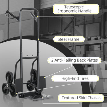 - • 6-wheels design for transporting loads up/down stairs, across uneven floor