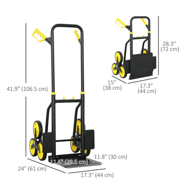 DURHAND 6-Wheels Stair Climber Hand Truck, Dolly Heavy Duty Folding Steel Load Cart with Adjustable Telescoping Handle for Moving, Luggage, Travel & Office, 154lbs Capacity