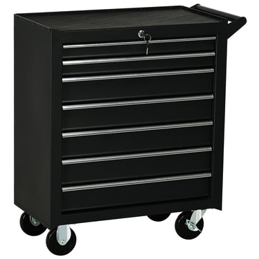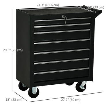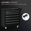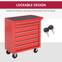 HOMCOM 7 Drawer Roller Tool Chest, Mobile Lockable Toolbox, Storage Organizer with Handle for Workshop Mechanics Garage, Red