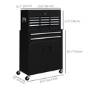 HOMCOM 6-Drawer Rolling Tool Chest, 2 in 1 Lockable Storage Cabinet with Hooks, Metal Tool Box for Garage, Workshop, Black