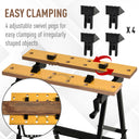 DURHAND Foldable Work Bench w/ 4 Adjustable Clamps, Carpenter Saw Table, MDF Surface, Steel Frame, Portable Work Bench 100kg/220lbs Capacity