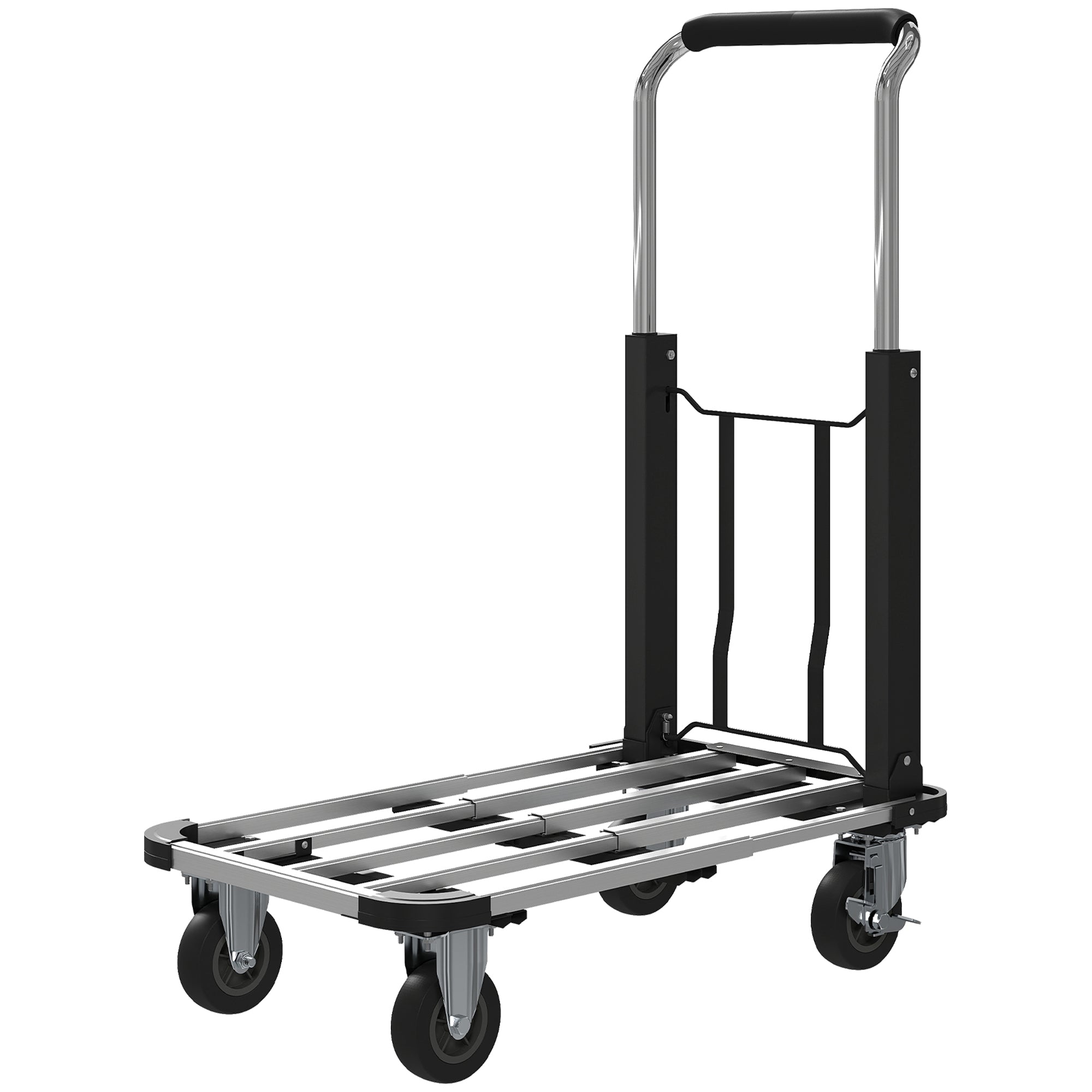 HOMCOM 330 lbs Heavy Duty Hand Truck, Folding Trolley, Dolly with Adjustable Handle and Extendable Platform, Silver and Black