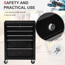 HOMCOM 5-Drawer Rolling Tool Cabinet on Wheels, Lockable Tool Chest, Tool Organizer for Garage, Factory and Workshop, Black