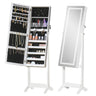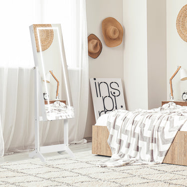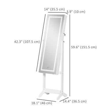 HOMCOM Lockable Jewelry Armoire with LED Light, Standing Mirror with Storage for Bedroom Dressing Room, White