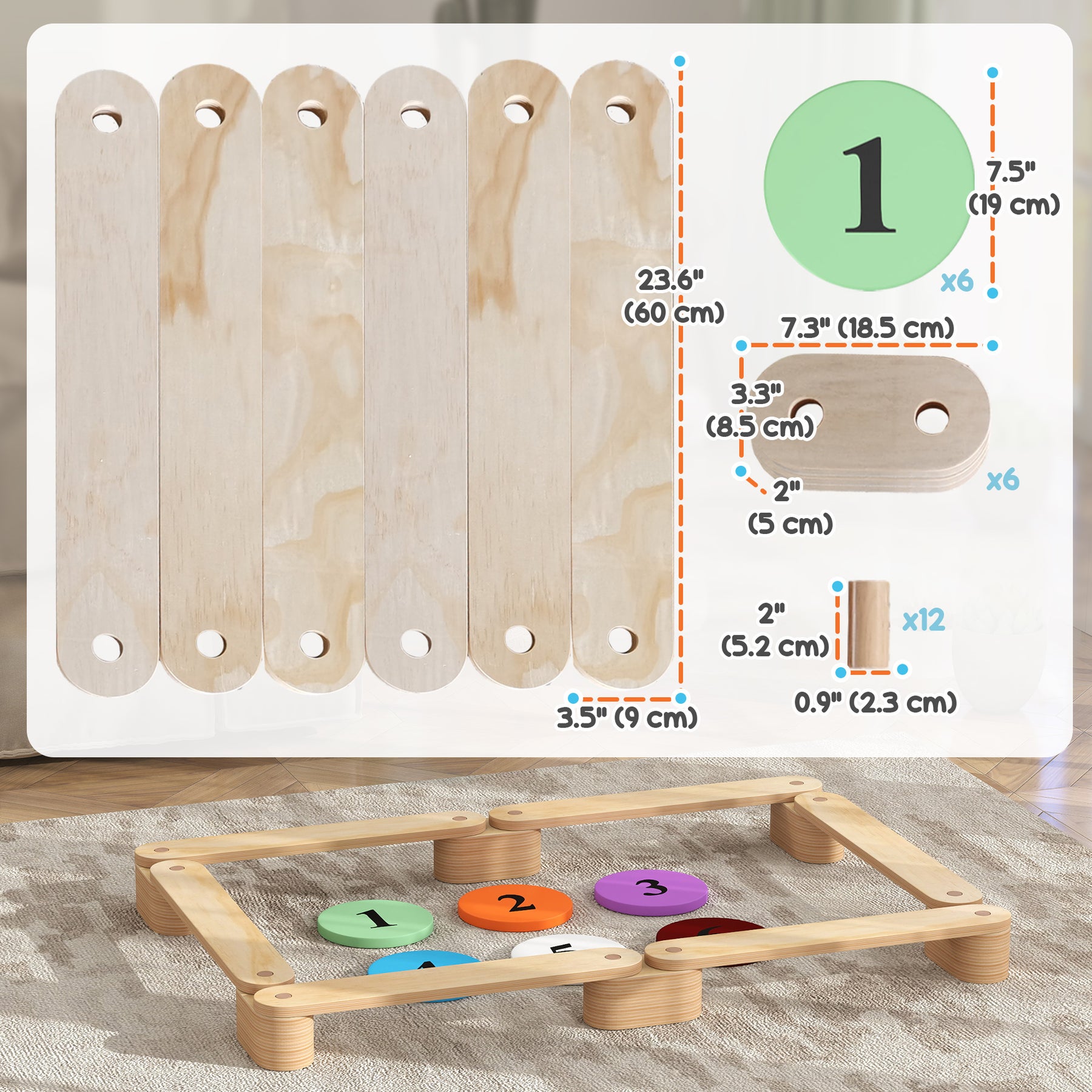 Discover the joy of movement with the Qaba Balance Beam! Designed to boost balance skills, this versatile set can be twisted into various fun shapes, making it a delightful exercise gift for kids. Crafted from smooth pine wood, it's colorful, safe, and fit for both indoor and outdoor play. Suitable for children aged 3-8, it's a great playtime companion for your kids!