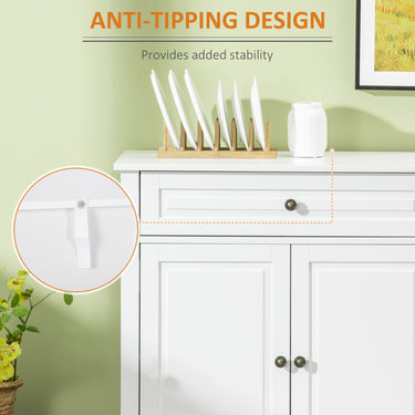 Quickly add that needed storage and get yourself clutter-free with this HOMCOM coffee bar cabinet. The neutral tone makes this kitchen buffet cabinet a low-key statement to your house. At the same time, the cabinet and drawer provide ample storage space for your daily accessories and utensils. Customize your home space with the interior adjustable shelf that moves to fit your needs.