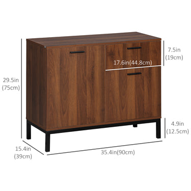 HOMCOM Kitchen Cabinet, Storage Cabinet, Sideboard Floor Accent Cabinet w/ Drawer, Enclosed Cabinet & Adjustable Shelves, Walnut Brown