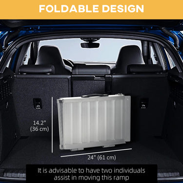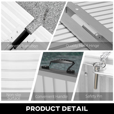 The right mobility solution will help you or your family gain confidence, independence, and stability in your home or vehicle. Let HOMCOM help create complete, easy mobility with our wheelchair ramp. Built from a robust aluminum with a ribbed surface to prevent sliding in any weather and has two high side walls to prevent accidental falls. Not only for use with wheelchairs, this wheelchair ramp for steps provides ease of access for scooters, bikes and any other unwieldy wheeled object.