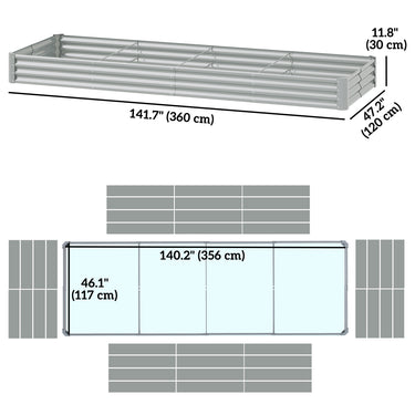 - • Planter Inner Size: 140.2" W x 46.1" D x 11.8" H (356 x 117 x 30 cm)