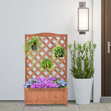 Outsunny Wood Planter with Trellis for Vine Climbing, Raised Garden Bed to Grow Vegetables for Backyard, 28" x 11" x 46", Brown
