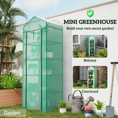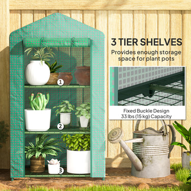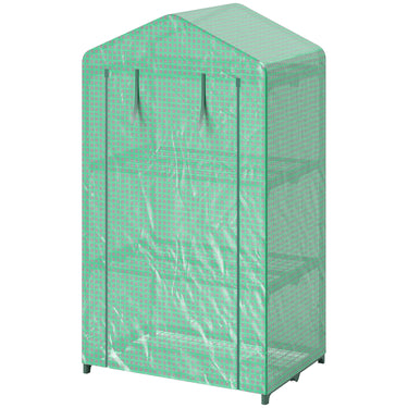 Get this portable greenhouse plastic from Outsunny to extend your growing season by protecting plants from cold and birds. It comes with a steel frame for a steady core. The PE cover creates a protective shell, holding in the heat and shielding from wind and rain. Features a roll-up door to enter and leave to access your plants at any time. Simply put up, go and grow. This small greenhouse can be the ideal solution for gardeners who want to keep their plants safe and secure throughout the cold.