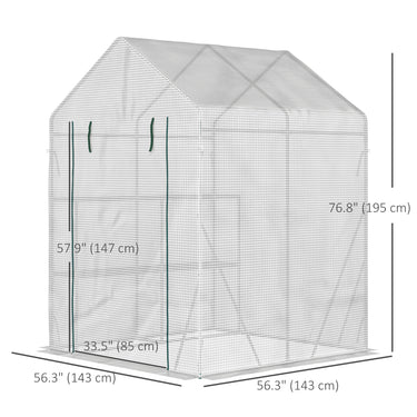 Outsunny 56" x 56" Walk-in Greenhouse Outdoor, Portable Gardening Plant Hot House with 2-Tier Shelf, Green