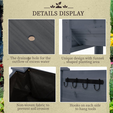 This Wooden vegetable planter from Outsunny has a simple apparence, but it's very practical. Made with solid fir wood, stable and durable. Our herb garden is an ideal house for your plants, your flowers and vegetables can fully absorb sunlight and water. You can hang some small tools on the hooks of each side to make planting easily. This unique garden box outdoor raised can be your good choice to get more interests and convenience from planting!