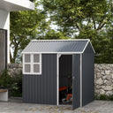 The garden tool shed from Outsunny is an excellent addition to your outdoor space, providing efficient organization for your tools. With 48 ft² (4.5 ㎡) of interior space, it can also serve as a storage house for bikes or motorcycles. The backyard shed features doors for easy access, a window for natural light in, four air vents to promote air flow, and a sloped roof preventing water buildup. For added security, it is equipped with a latch lock.