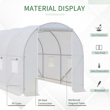 This Outsunny poly tunnel greenhouse is perfect for the home gardening enthusiasts. The galvanized steel tube frame and UV-fighting PE mesh cloth cover of the greenhouse tent stand up to the light rain and wind. A zippered door provides a tight seal while also allowing quick in and out access this reinforced steel greenhouse. Windows allow natural lighting to pass throughout the entire plastic greenhouse. Our Outsunny hot house is the ideal solution for planting throughout the year.