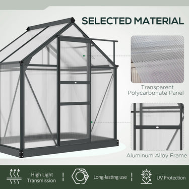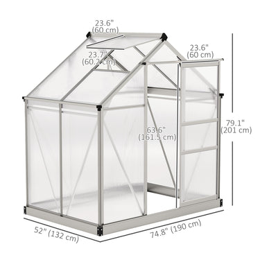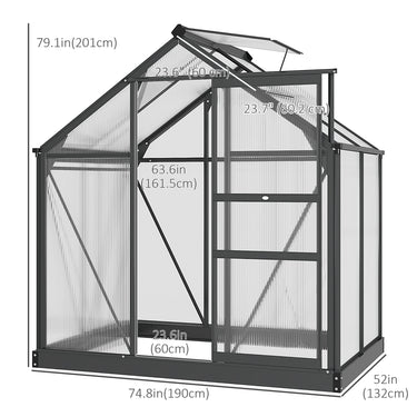 Outsunny 6.2' x 4.3' x 6.6' Clear Polycarbonate Greenhouse Large Walk-In Green House Garden Plants Grow Galvanized Base Aluminium Frame w/ Slide Door