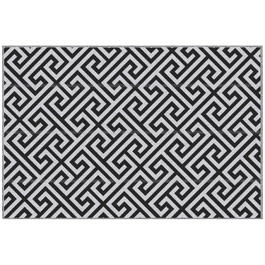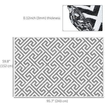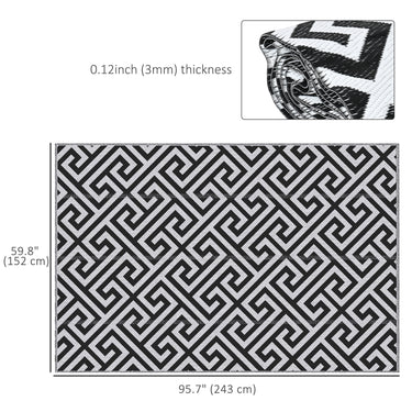 Outsunny Reversible Outdoor RV Rug, Patio Floor Mat, 5' x 8' Plastic Straw Rug for Backyard, Deck, Beach, Camping, Black & White
