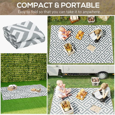 Please set up your camping or outdoor activities base with our waterproof rug. Designed for camping, picnics, and road trips, it's suitable for camper vans, RVs, beaches, patios, and playrooms. Resistant to water, UV, and fading its reversible design allows for a quick style change. Be the envy of your friends!