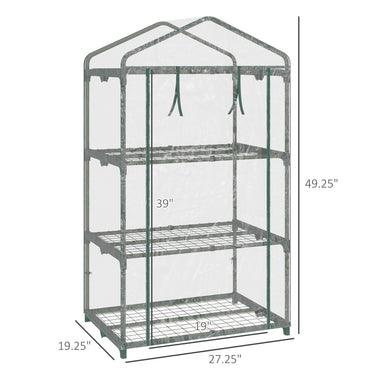Outsunny 3 Tier Mini Greenhouse, Portable Outdoor Flower Stand with Shelf Clips, Indoor Greenhouse with Plastic Cover and Steel Frame, Transparent, 27" x 19" x 49"