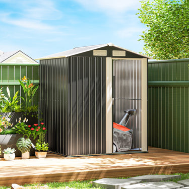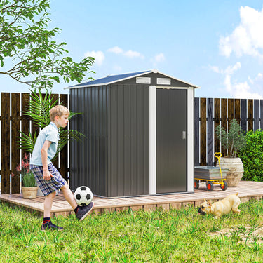 Essential outdoor shed with a sheltered roof to keep safe. This Outsunny shed is a must for every home. Made from steel, the shell is strong and tough - built with a sliding door to open and access inside easily. The built-in ventilation slots allow air inside, keeping contents aerated and fresh. A sloping roof helps prevent rainwater and other liquids build up, so nothing leaks through inside. Foundation kit included for tool shed to stand level on the ground.