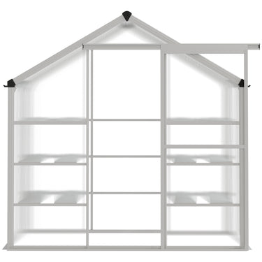 If it's green, you can house it with Outsunny. Protect plants from cold, wind, rain, and wild animals. Control heat and humidity. Let in light and UV stop sun damage. This polycarbonate walk-in greenhouse gives you a personal plant nursery for your garden. Inside your greenhouse are multiple shelves you can use to organize your plants by color, age, size, or type. Make use of the sliding door for easy access and quick control over humidity. Exercise your green thumb with Outsunny.
