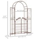 With flourishes and "fleur de lis" motifs, Outsunny's arched trellis provides an easy and attractive way to add elegance to your garden or event. A trellis to each side and shelves at each end of our arch allow you to plant climbing vines inside or outside with help from plant pots. An excellent entryway for weddings, decorate it with flowers, balloons, lights, or tulle. A centerpiece with form and function, use the latching double doors to provide privacy to your yard or as a part of a ceremony.