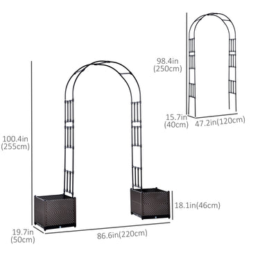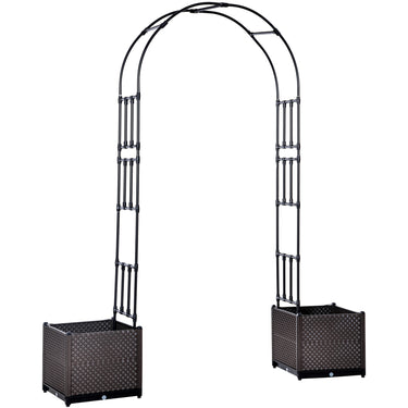 Outsunny 8ft Garden Arch with Two Planters Outdoor Steel Trellis Arbor for Climbing Plants, Weddings, Party, Brown, Black