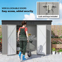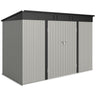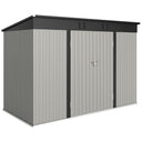 Keep your garden tools and outdoor essentials secure and tidy with the Outsunny Backyard Storage Shed! This spacious 9' x 4' metal shed offers a robust, waterproof haven with easy-access double hinged doors. Featuring two vents for optimal ventilation, this outdoor garden shed is your go-to for decluttering and protecting your outdoor space.