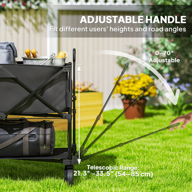 Discover the convenience of the Outsunny foldable wagon, a double-decker marvel offering ample storage with an extended lower shelf for bulky items. Its robust 450 lbs. (200 kg) capacity and waterproof 600D Oxford fabric make it a reliable choice for any task. Effortlessly maneuver through any terrain with its 360° rotating all-terrain wheels. Great as a garden wagon, camping cart, or utility trolley!