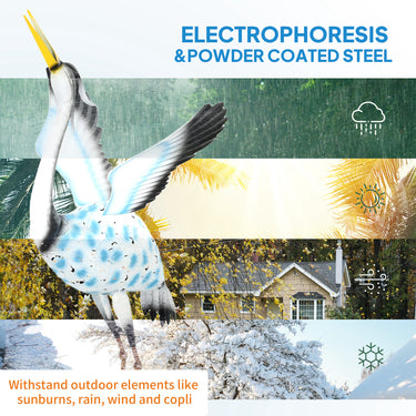 A bit monotonous in the garden? Looking for an eye-catching decorative piece? Let Outsunny yard art sculpture lights up your garden. Bright colors and vivid details. Built to withstand outdoor elements, this steel lawn statue undergoes electrophoresis and powder coating processes, while its stable standing is enhanced by two U-shaped ground stakes.