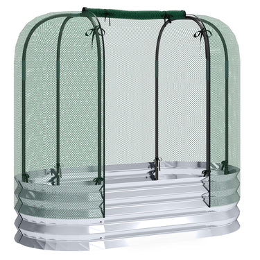 Outsunny Galvanized Raised Garden Bed with Crop Cage Protection Net Cover, Outdoor Planter Box for Vegetables, Flowers, Herbs