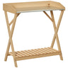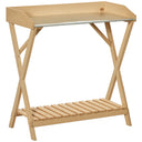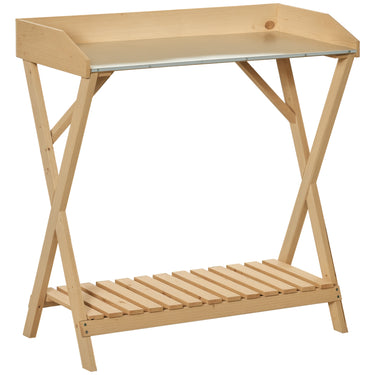 Outsunny Garden Potting Bench Table, Wooden Work Station, Outdoor Planting Workbench w/ Galvanized Metal Tabletop and Storage Shelf