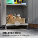 Outsunny Outdoor Storage Cabinet, Wooden Garden Storage Shed with 2-Tier Shelves, Metal Tabletop and Magnetic Doors, Grey