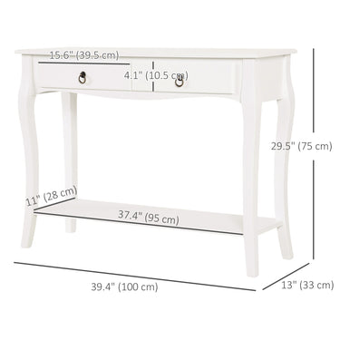 HOMCOM Console Table, Modern Entryway Table with 2 Drawers and Bottom Shelf, Sofa Table for Living Room, Hallway, Ivory White