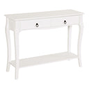 Whether you live in a single room apartment or a luxury villa, whether you are the host or the guest, our console table with drawers makes an immediate impression when you enter the room. Solid structure and pine wood leg make this frame is sturdy and reliable for years of use. Crafted into an elegant design to blend in its surroundings with ease. Features 2 pull-out drawers and a shelf for plenty of storage, with a large tabletop for photos album and ornaments. Do not hesitate and take it home!