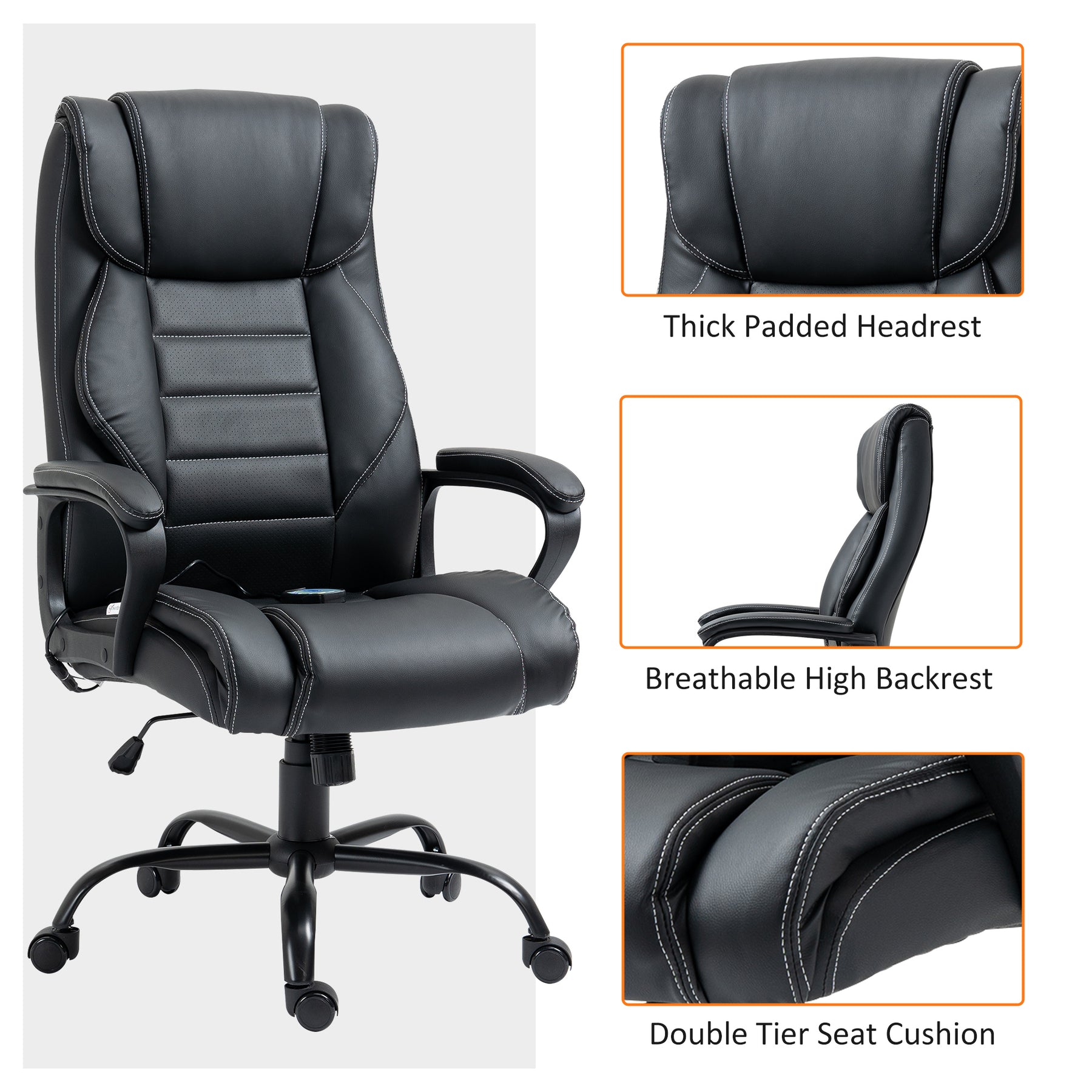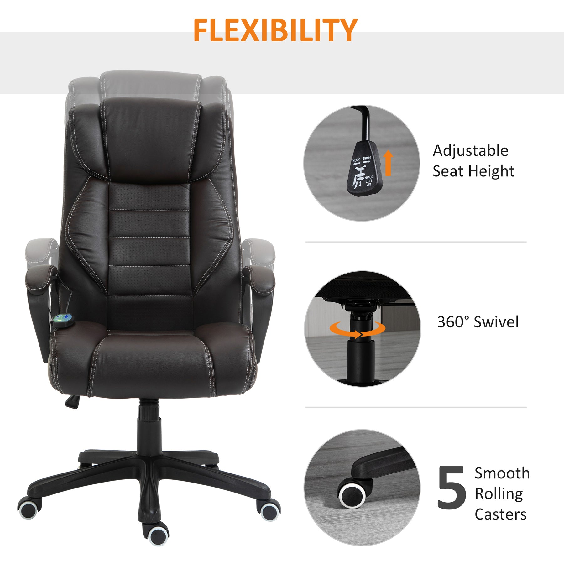 Work time will always be worth it with this massage office chair from Vinsetto. There are four vibration points on the back and two on the seat, controlled by the attached remote - making the comfy desk chair easy to de-stress your body. Comfortable features to support your body include the swivel and height-adjustable seat, fixed armrests, and tall back with extra padding on the head area. It comes with five wheels; you can have a quick move during work with our high back office chair.