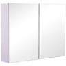 HOMCOM Bathroom Mirror Cabinet, Wall-Mounted Storage Organizer with Double Doors, Adjustable Shelf, Light Lilac