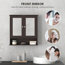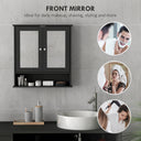 Creating a stylish storage option has never been so easy! This bathroom mirror cabinet from kleankin fits nicely with any decor and can be used in the kitchen, garage, or bathroom to create stylish additional storage. It is constructed of solid MDF and has a bottom shelf and a 2-tier cabinet with mirrored doors. The bathroom mirror with storage provides a spacious open area for your medicine, toothbrush, cups, or bottles, making it more convenient for any indoor space.